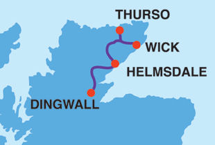 We start at Dingwall - the Inverness section having been covered in SkyeTrain. Much of the 142 miles from Dingwall to Wick is sparsely inhabited. The line follows the coastal contours through Invergordon to Tain. Instead of taking the direct route across the Dornoch Firth, the line heads inland via Lairg.